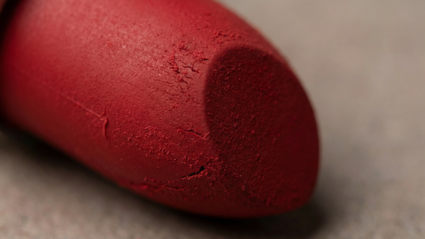 Prompt: Extreme close-up, a lipstick, seeing the minute granular texture on the surface of the paste and a velvet-like texture.