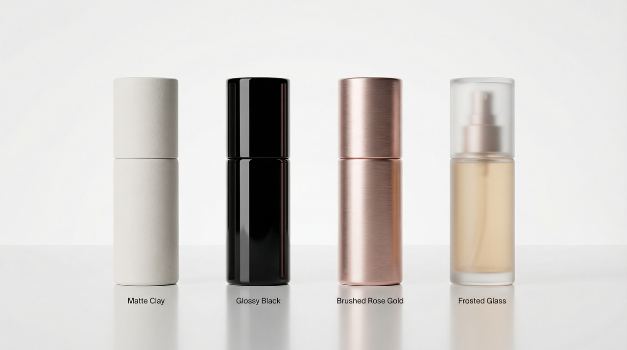 Second from Right:Brushed Rose Gold, featuring a delicate brushed metal texture.