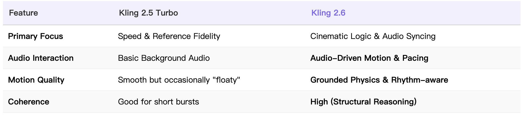 Comparison: Kling 2.6 vs Kling 2.5 Turbo