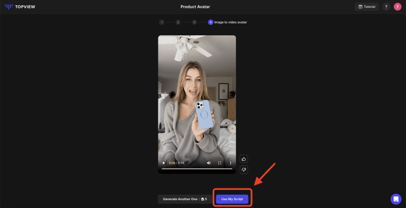 Click "Use My Script", Topview will redirect you to the "Video Avatar" tool.